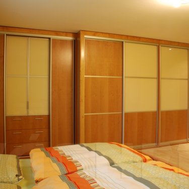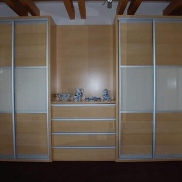 Náročnějším zákazníkům nabídneme vestavěné skříně z masivního dřeva včetně skutečně atypických, například obloukových provedení.