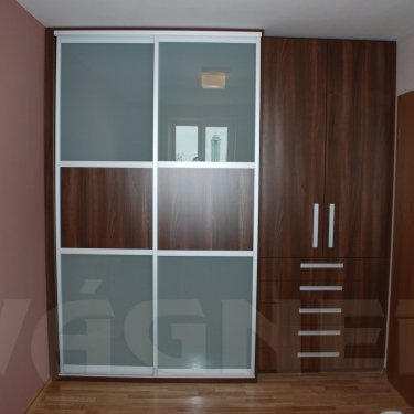Dveře vestavěných skříní doporučujeme v posuvném provedení, které zachovává všechny výhody skříní, především úsporu a využití místa. Možnosti provedení dveří jsou takřka neomezené a výběr je zcela podřízen přáním a požadavkům našich klientů. Nejčastěji používaná provedení dveří do vestavěných skříní zahrnují především imitace dřev, dřevěné mřížky, zrcadla, skla, lakované plochy nebo moderní a efektní novinku - lakovaná skla.