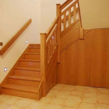 Vyrábíme na míru samonosná dřevěná schodiště všech typů, obklady betonových schodišť, stupnice z masivu, schodišťová i interiérová zábradlí. Schodiště a zábradlí jsou vyrobena především z tvrdých dřevin (buk, dub), která jsou vysoce odolná a mají dlouhou životnost, na vyžádání ale vyrobíme i schodiště a zábradlí z jiných dřev. U moderních schodišť a zábradlí lze pro dokonalý vzhled kombinovat i další materiály - kov, sklo, kámen apod.