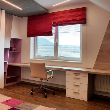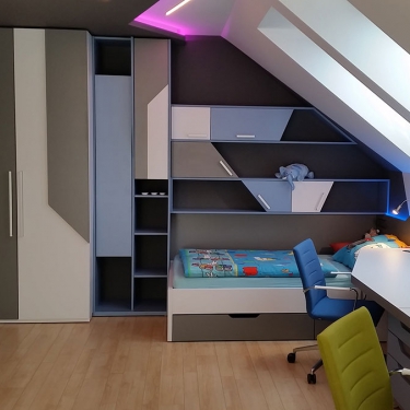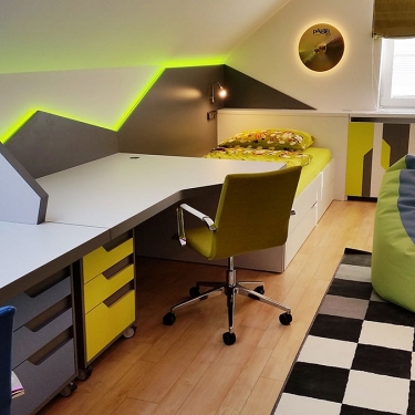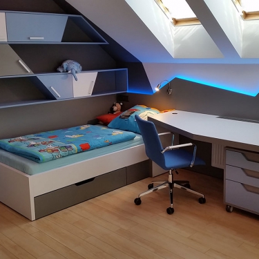 Známe požadavky, které jsou na nábytek do dětského pokoje kladeny a umíme je splnit - díky našim zkušenostem i díky vlastním výrobním kapacitám. Používáme ověřené a bezpečné materiály, povrchy upravujeme bezpečnými barvami a myslíme na to, že nábytek by měl růst společně s dětmi.